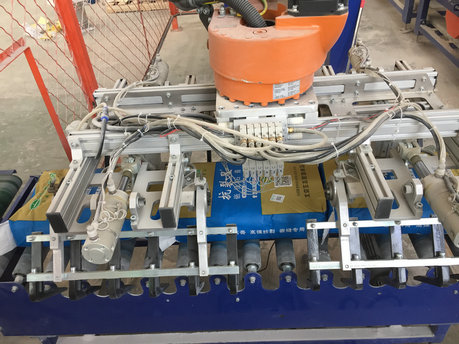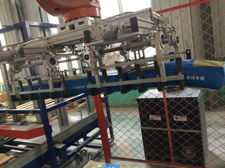 將產(chǎn)品通過進料輸送帶輸送進料,機器人及夾具到產(chǎn)品上方,抓取產(chǎn)品后移動到棧板位,按事先輸入的碼垛形式進行產(chǎn)品碼放,碼放完成后自動輸送到纏繞工位,纏繞完成后叉車運走。