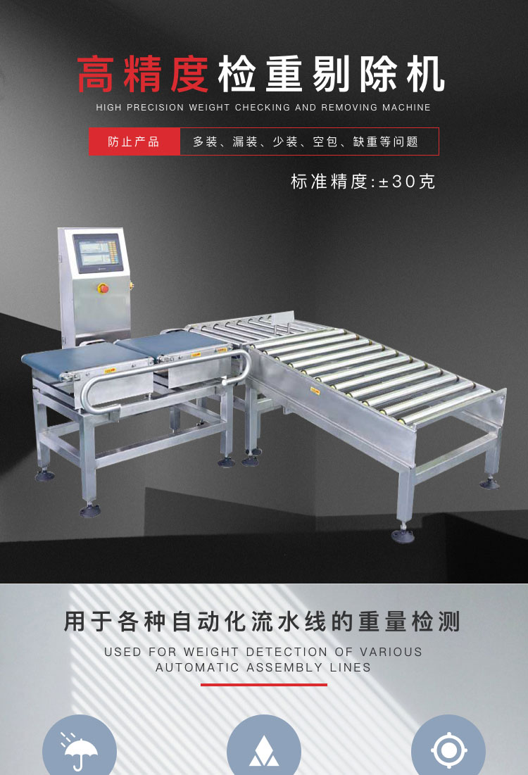 介紹:應(yīng)用領(lǐng)域: 用于各種自動化流水線以及物流輸送系統(tǒng)上重量檢測、上下限判別或重量分級選別; 廣泛應(yīng)用于制藥、食品、玩具、五金、日化等行業(yè)的在線重量檢測; 可直接替代人工稱重,提高生產(chǎn)效率以及稱重的一致性、可靠性。